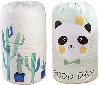 Umora 布団収納 衣類収納バッグ ケース 大容量 整理 片づけ 引越し 衣替え 防湿 衣類雑貨収納バッグ 円筒型 ほこり 汚れ 防ぐ 梅雨対策 (パンダ+サボテン) 2枚組
