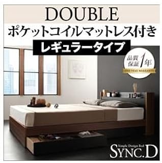 収納ベッド ダブル[sync.D][ポケットコイルマットレス:レギュラー付き] フレームカラー:ウォルナット×ブラック マットレスカラー:ブラック 棚・コンセント付き シンク・ディ