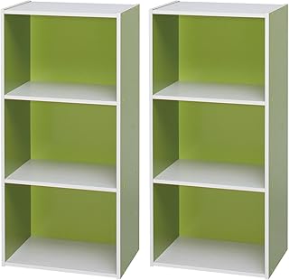 アイリスオーヤマ カラーボックス 3段 2個セット 幅41.5×奥行29×高さ88cm グリーン/オフホワイト CX-3