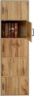 [山善] カラーボックス (扉付き) 5段 幅42×奥行29×高さ146cm 本棚 収納棚 洗面所棚 食器棚 組立品 オーク TCB-5(OAK3D)