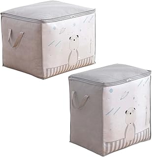 WELSTIK 収納ボックス 衣服ケース 収納ケース 洋服入れボックス 衣類ボックス 大容量 折り畳み 取っ手付き 蓋付き 整理ボックス 洗える 防塵 防湿 不織布 活性炭 消臭 大容量 高耐久性 ハンドル付き 2個セット (グレー)