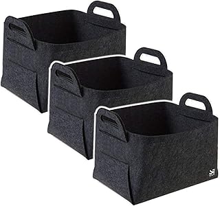 収納 ボックス 折り畳み 取っ手付き 小物入れ フェルト生地 おしゃれ 北欧 衣類 クローゼット インテリア 日用雑貨 (ダークグレー(3個セット))