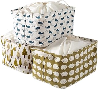 Raihu 収納ボックス 収納バスケット 収納ケース 折り畳み 綿麻生地 3個セット おもちゃ整理 大容量 防水加工 巾着付き 取っ手付き