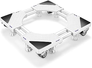 洗濯機 台 Easyteek 冷蔵庫置き台 防水パン 8足8輪 洗濯機スタンド キャスター付 高さ調節可能 奥行48~66cm対応 移動式 減音(白)