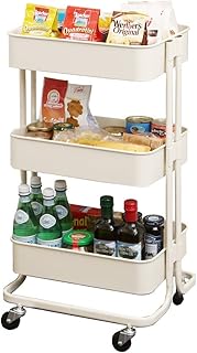 アイリスプラザ キッチンワゴン 調味料ラック バスケットラック 収納ワゴン 3段 キャスター付 幅44.5×奥行35×高さ78cm ベージュ
