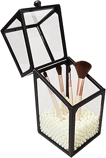 メイクブラシ 化粧道具 収納ケース ブラシスタンド ホルダー フタ付きボックス パール付属 (ブラック)