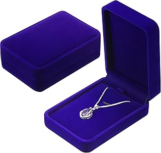 Hicarer ベルベットペンダント ネックレス ボックス ジュエリーケース ロイヤルブルーボックス 誕生日 結婚式 母の日 卒業式 (2)
