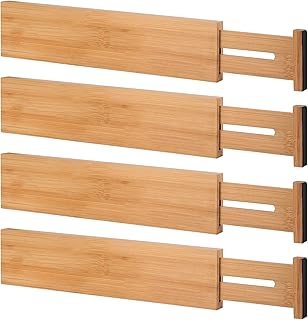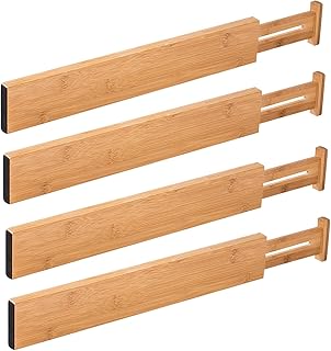 Pipishell 竹製 引き出し仕切り オーガナイザー 調節可能 拡張可能 木製セパレーター 整理 キッチン 寝室 バスルーム ドレッサー 4パック (12.5~17インチ)