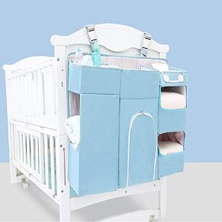 YBB ベビーベッド収納 吊り袋 収納袋 小物入れ ベビー用品 子育て 出産祝い 折りたたみ式 収納バッグ サイドポーチ おむつ 雑貨整理 おもちゃ小物収納ケース 大容量 水洗い可能 (ブルー)