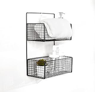 スパイスラック オーガナイザー 壁取り付け 2段 穴開き ブラック 鉄製 ワイヤー 吊り下げ式 スパイス棚 ストレージラック バスルーム 寝室 リビング キッチン オフィス コスメティック
