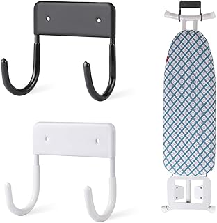 Lenink アイロンボードハンガー 2個パック アイロンボードホルダー アイロンボードフック 壁取り付け 大型&小型アイロンボード収納 壁ブラケット (ブラック&ホワイト)