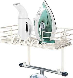 Oranlife アイロンボードハンガー 壁取り付け アイロンハンガー アイロンボードラック 電気アイロンホルダー 家庭用バスルームシェルフ 最大幅5インチ