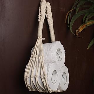 マクラメ トイレットペーパー収納ホルダー ボヘミアン ノーティカルスタイル ホームデコ 壁取り付け ティッシュロールスタンド 3Xロール対応 36インチ