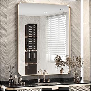Tokeshimi 24 x 36インチ 壁ミラー バスルーム用 金色のメタルフレーム 装飾 長方形 壁取り付け ホームデコ コーナーハング (水平/垂直)