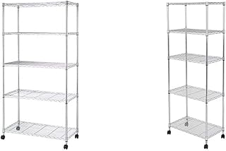 [ドウシシャ]ルミナス スチールラック 防サビ 幅91.5×奥行46×高さ178.5cm キャスター付属 エコノミーシリーズ 5段 ポール径25mm EL25-90185 & スチールラック 防サビ 幅59.5×奥行34.5×高さ155cm キャスター・固定脚付属 エコノミーシリーズ 5段 ポール径19mm EL19-15605【セット