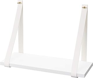 ウォールシェルフ 木製 壁掛け棚 レザー吊り 飾り棚 シンプル 壁付け棚 壁面収納 (ホワイト)